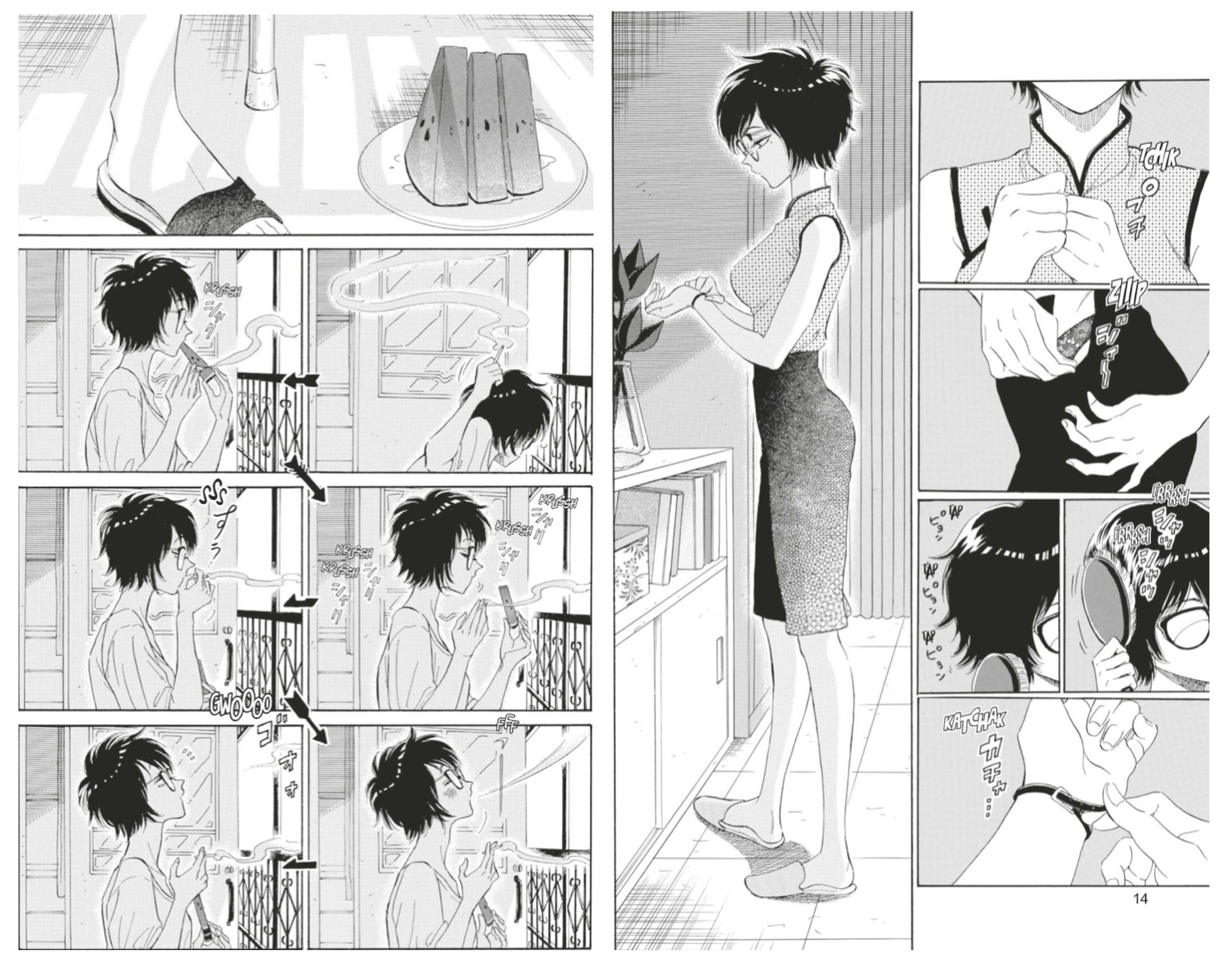 Our main character is Reiko Kujirai, a 32-year-old real estate agent who’s got her life mostly together—except, maybe not? She’s got her little routines: a morning smoke, a chilled slice of watermelon, a slow walk to work through the cluttered streets of Kowloon. She works at the small but bustling Wong Lo Realty Company. She lunches nearly every day with her co-worker Hajime Kudou, a laid-back and occasionally infuriating guy two years her junior.