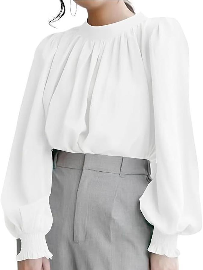 Blouse for women, long sleeves, autumn/winter, balloon sleeves, back ribbon, gathered, pretty