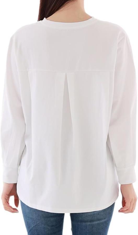 デザイン: 後ろドレープデザインが特徴的なTブラウスで、エレガントな雰囲気を演出