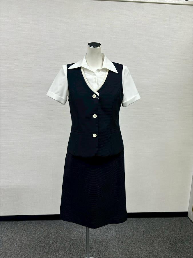 〇半袖ブラウス・スカート・ベストの3点セット!ボーダーのデザインを織り柄で表現した素材は微光沢が美しくモダンな印象。ストレッチも効いていて軽やかな着心地です。「素材・サイズ・お手入れ方法」★半袖ブラウス:ポリエステル85%,綿15%(洗濯機OK)サイズ5号:バスト90㎝,肩布37㎝,着丈53㎝,袖丈19㎝★ベスト:ポリエステル70%,アセテート30%(洗濯機OK)サイズ9号:バスト90㎝,着丈50㎝★スカート:ポリエステル70%,アセテート30%(洗濯機OK)サイズ7号:ウエスト62㎝,ヒップ94㎝,スカート丈53㎝製造工程の関係で商品には±2%のサイズの許容範囲がありますのでご了承ください。写真画像は、お使いのモニター設定やお部屋の照明等により実物と色味や質感は多少異なって見える場合がございます。