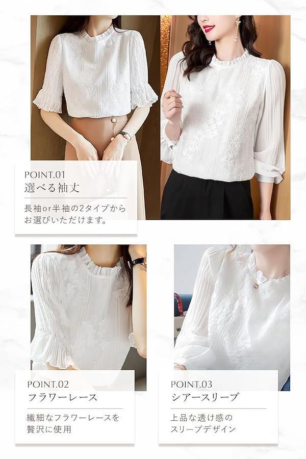 ポイント(1):ナチュラルで上品な女性らしさ溢れる贅沢なレースブラウス。シンプルなデザインと可愛さ、上品さを持ち合わせ様々なボトムスとの組み合わせにピッタリです。