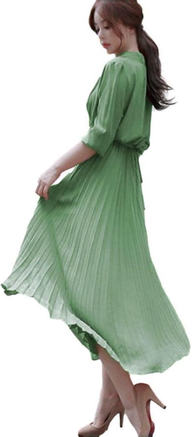 「エレガントな美シルエット」 ウエストから裾に向かって施された細かいプリーツが縦長ラインを強調し、エレガントな美シルエットを描く上品ロングワンピース。