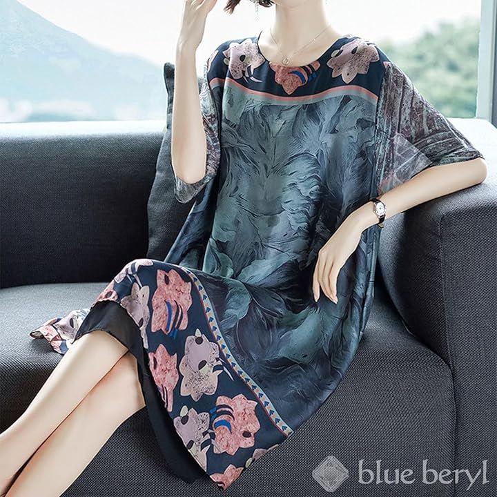 「オリエンタルなムードが印象的なAラインワンピース」 フワリと緩やかなシルキー素材に、トーンをおさえたボタニカルプリントがしっとりと落ち着いたムードのワンピース。