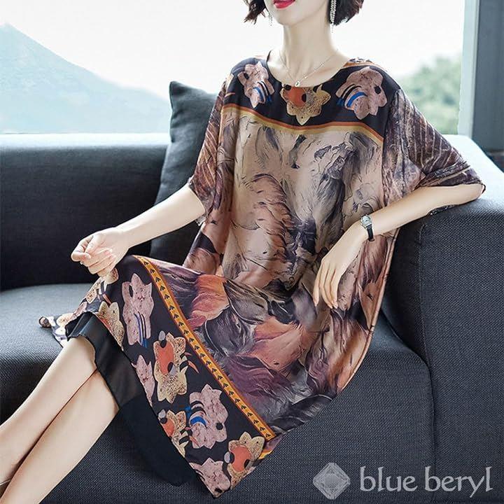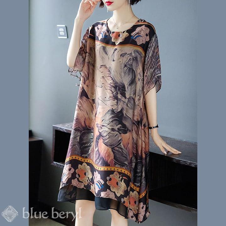 フワリと緩やかなシルキー素材に、トーンをおさえたボタニカルプリントがしっとりと落ち着いたムードのワンピース。