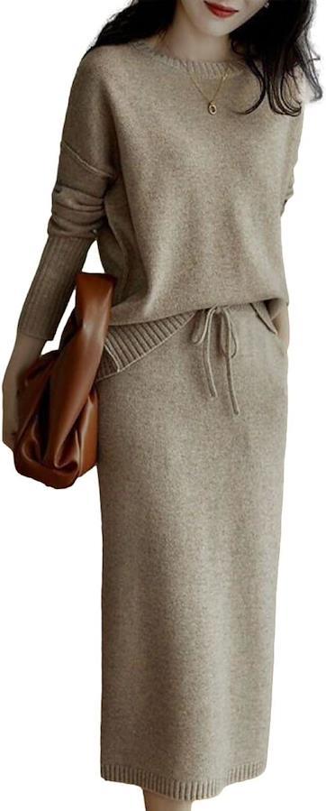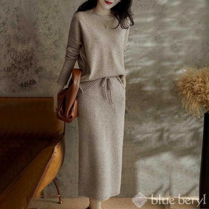 セットでワンピースのように、また単品でもコーディネートしやすいニットセットアップ。