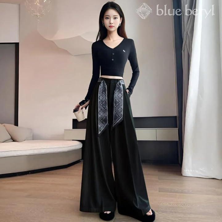 ゆったりとしたラインが脚を美しく長く見せ、スタイリッシュで都会的な印象を与える一着です。