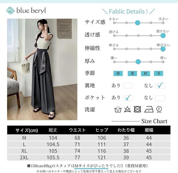 総丈/ウエスト/ヒップ/わたり幅/裾幅 M: 104/68/106/36/44 L: 104.5/71/111/37/44 XL: 105/74/116/38/45 2XL: 105.5/77/121/39/45 *158cm/49kgのスタッフの場合:Mがジャストサイズでした(普段M着用)