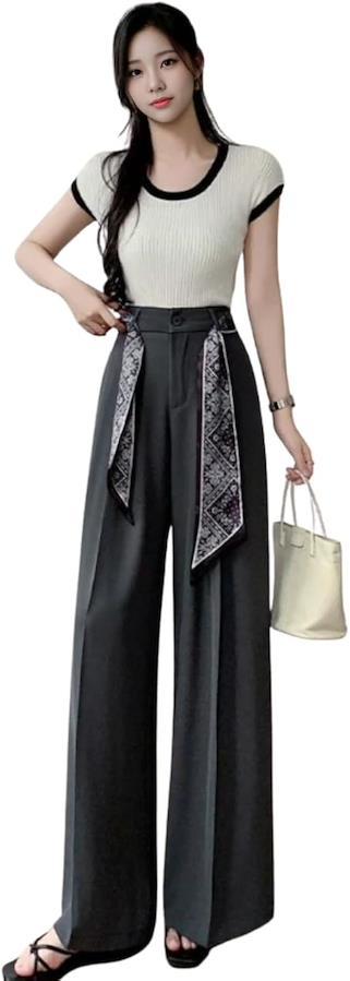 「エレガントなスカーフベルト付きワイドパンツ」 モードな雰囲気を漂わせるワイドシルエットパンツに、存在感あるスカーフベルトをプラス。