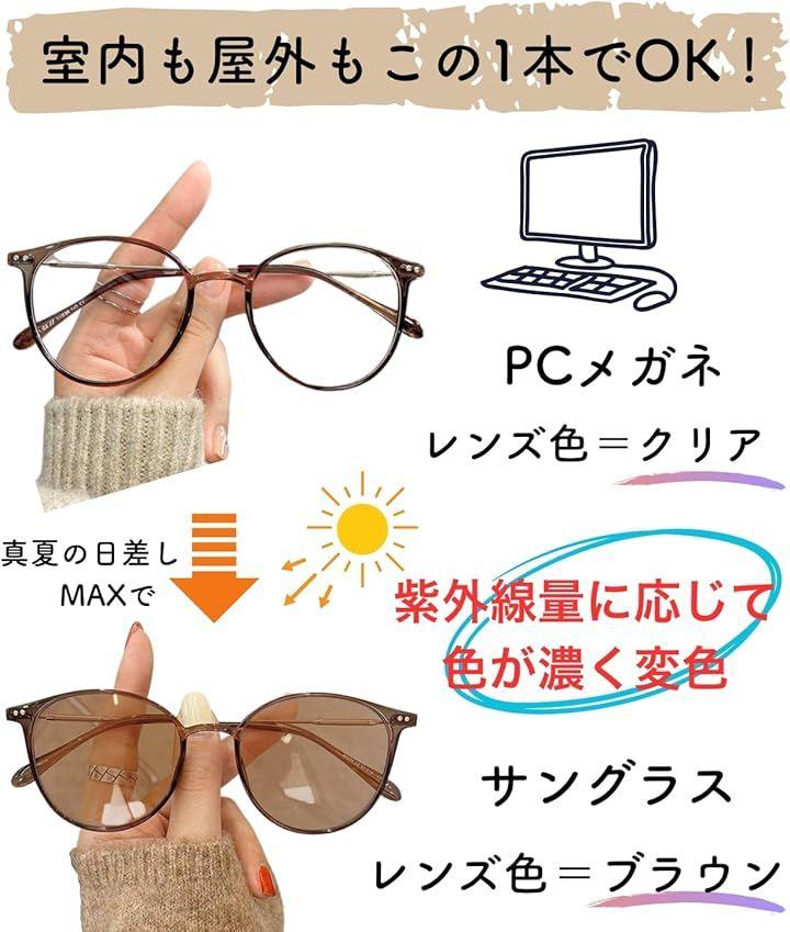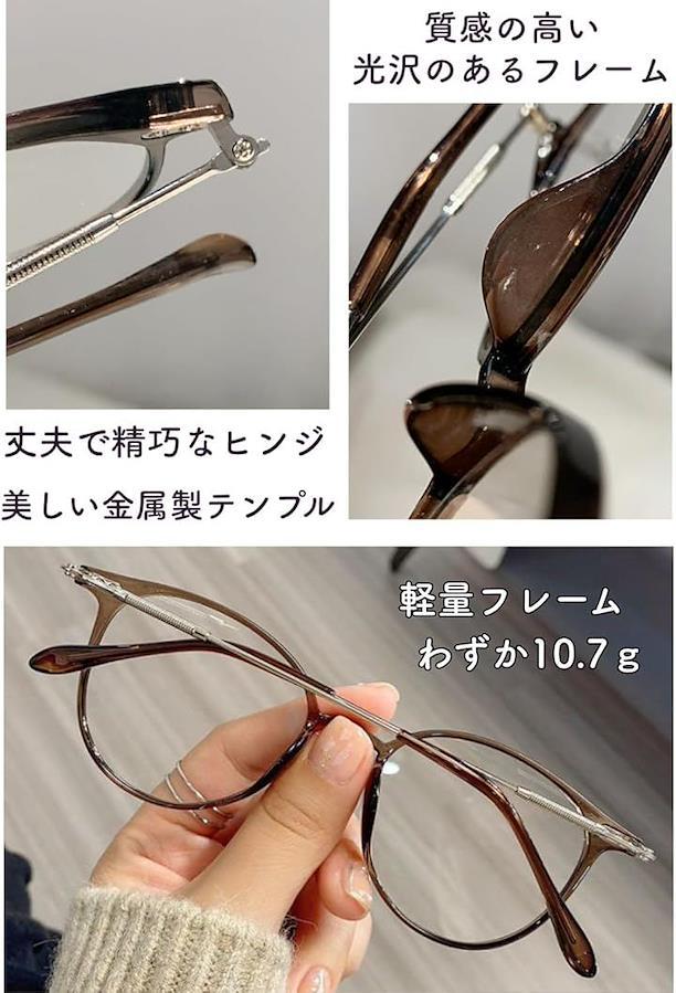 「製品仕様」 ・機能:調光、ブルーライトカット、UV400(紫外線99%以上カット) ・フレーム重量:約10.7g 全体約19.7g ・サイズ:幅138mm、レンズ幅50mm、レンズ高45mm、ブリッジ19mm、テンプル143mm ・素材:PC、メタル ・対象:レディース 小さめ ・フレームカラー:ブラウン ブラック グレー アプリコット ・付属品:おしゃれな専用メガネケース(カラー グレー) メガネクロス(フレームカラー・ブラウンのみ 2025/10月から)