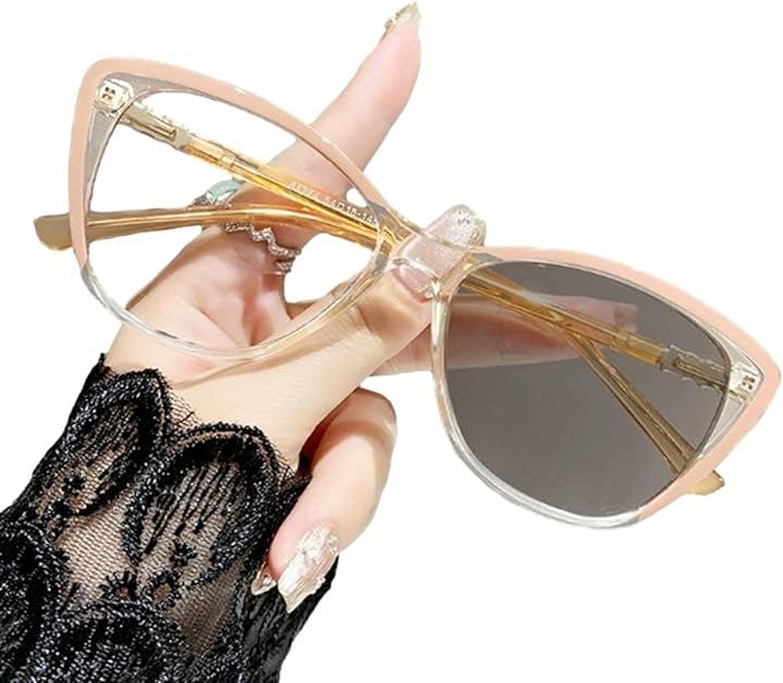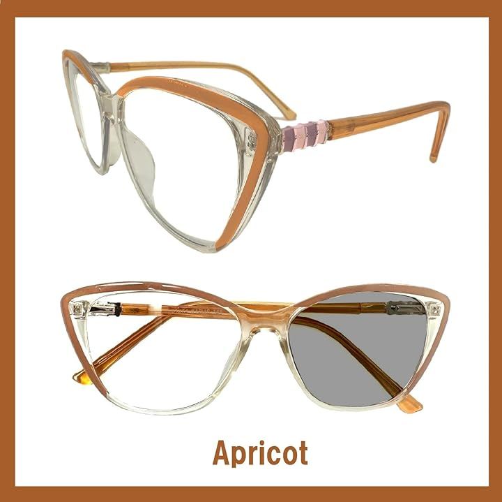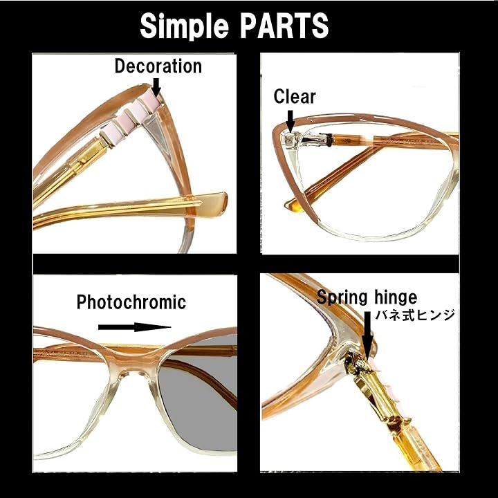 1. 「1本2役|自動変色」 室内ではクリアなブルーライトカットメガネとして機能し、屋外では紫外線量に応じてレンズの色が変わり、自動でサングラスに変化します。