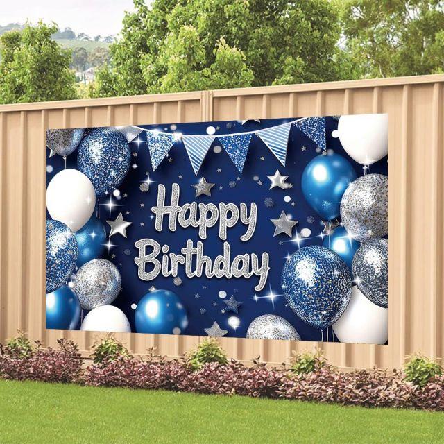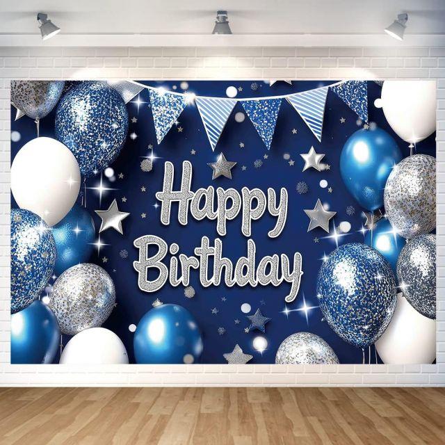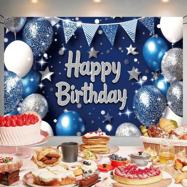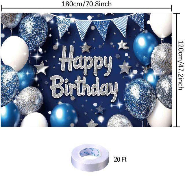 サイズ:180cmx120cm◆商品名:ブルー&シルバーバースデータペストリー180×120cmブルー&シルバー誕生日背景布写真撮影壁飾りパーティー装飾インスタ映えSNS撮影記念日繰り返し使える洗えるポリエステル製男性