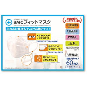 ■商品概要メーカー:ビー・エム・シー商品名:BMC フィットマスク レギュラーサイズ(60枚入)区分:日用雑貨内容量:60枚商品概要:メガネが曇りにくい立体構造。耳が痛くなりにくい超ふわふわ耳ゴム。肌さわりが良く、長時間装着していても口元爽快。JANコード:4580116956386商品コード:212400668