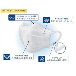 ■商品の特徴・吸水力アップ。ムレにくく、汗や呼気によりマスク内側の結露の発生を抑えます!・メガネのくもり、しっかりカット。やわらかノーズフィッター採用。・ガードステッチ加工で顔のラインにピッタリフィット。・耳にやさしいふわふわゴム