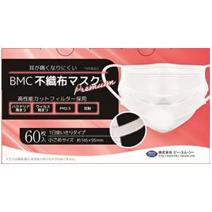 ■商品概要メーカー:ビー・エム・シー商品名:BMC 不織布マスクプレミアム 小さめ(60枚入)区分:日用雑貨内容量:60枚商品概要:耳ひも幅6mmで痛くなりにくいJANコード:4580116956744商品コード:212400802
