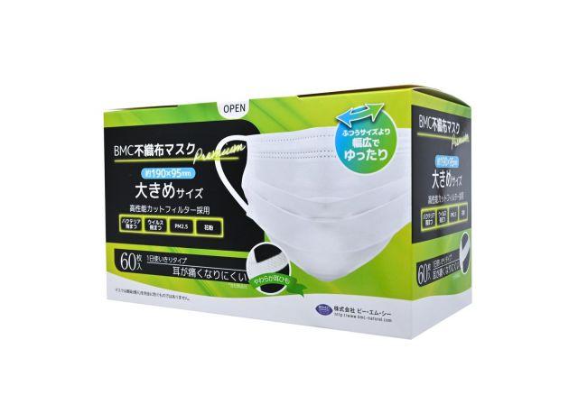 スタイル:シンプル◆商品名:[ビー・エム・シー]BMC不織布マスクプレミアム1日使いきりタイプ大きめサイズ60枚入