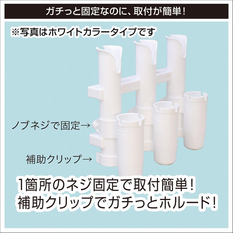 カラー:ブラック材質:樹脂(PP)、ステンレス(ネジ部分)取付対応径:Φ50mm ■ホルダー内径:Φ55mmロッドホルダーやロッドスタンドに装着するジグホルダーです。ジグやルアーがセットされたロッドをロッドホルダーに挿した時に、ジグやルアーが暴れないように収納できるから安心です。