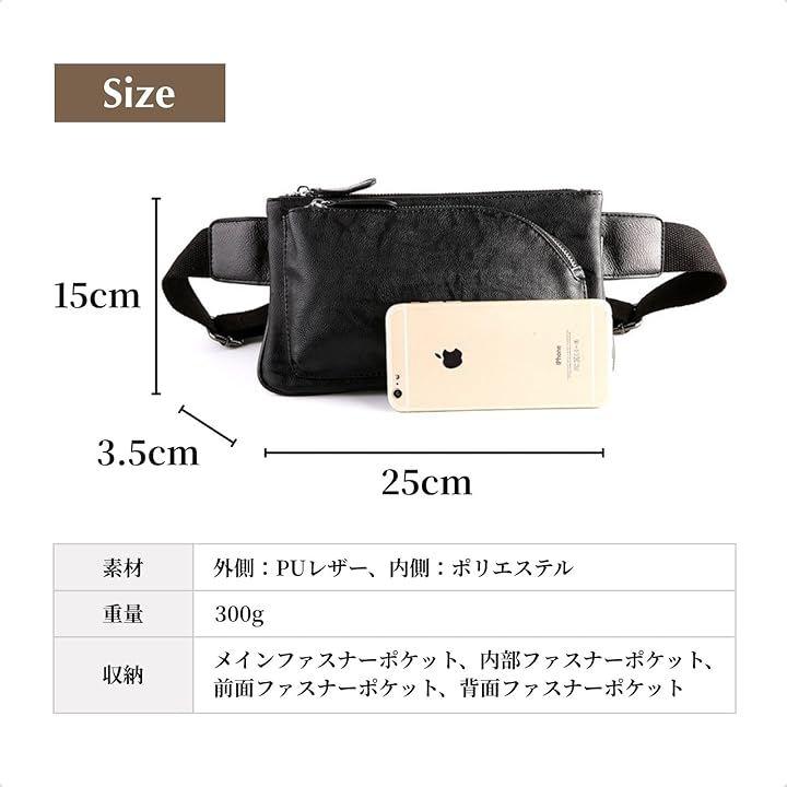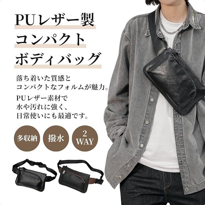 多収納設計でスマホや財布、鍵などをすっきり整理でき、撥水PUレザー素材で雨や汚れにも強い仕様。