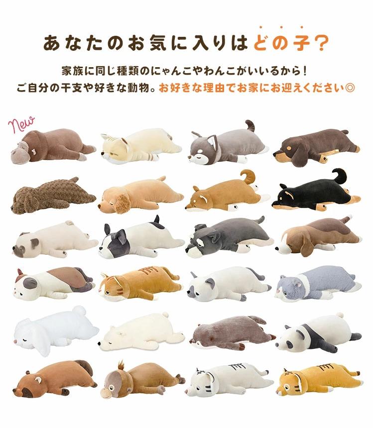 ■サイズ【犬】ゴールデン[ソラ] :長さ56×幅26×高さ14cmプードル[ショコラ] :長さ50×幅24×高さ12cmパグ[はな] :長さ52×幅23×高さ14cmビーグル[ビッキー] :長さ53×幅23×高さ14cmチワワ[ココア] :長さ54×幅27×高さ14cm柴犬[コタロウ] :長さ54×幅21×高さ14cm柴犬[コテツ] :長さ54×幅21×高さ14cmシュナウザー[ジョイ] :長さ49×幅22×高さ12cmブルドッグ[ブルル]: 長さ53×幅25×高さ13.5cmダックスフンド[チョコ]:長さ50×幅23×高さ13cm【猫】ミケ猫[ゆず]: 長さ49×幅21×高さ14cmスナネコ[スナコ] :長さ54×幅27×高さ14cmシャム猫[レオ]: 長さ54×幅25×高さ13cmトラ猫[ムギ]: 長さ54×幅25×高さ13cmスコティッシュ[まる]: 長さ50×幅23×高さ13cm【その他】シロクマ[ラッキー]: 長さ53×幅23×高さ16cmうさぎ[つむぎ]: 長さ50×幅20×高さ13cmたぬき[ぽんきち] :長さ55×幅22×高さ16cmカワウソ[くるり] :長さ54×幅23×高さ16cmオラウータン[ウータン] :長さ54×幅25×高さ13cmトラ[ラム・テン] :長さ56×幅23×高さ12cmゴリラ[ボンゴ]:長さ50×幅32×高さ15cmパンダ[リンリン]: 長さ53×幅23×高さ14cmうし[モーリー] :長さ55×幅23×高さ15cm