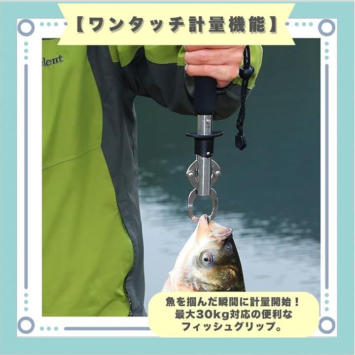 「ワンタッチ計量機能」魚を掴んだ瞬間に計量開始。最大30kg対応の便利なフィッシュグリップ。
