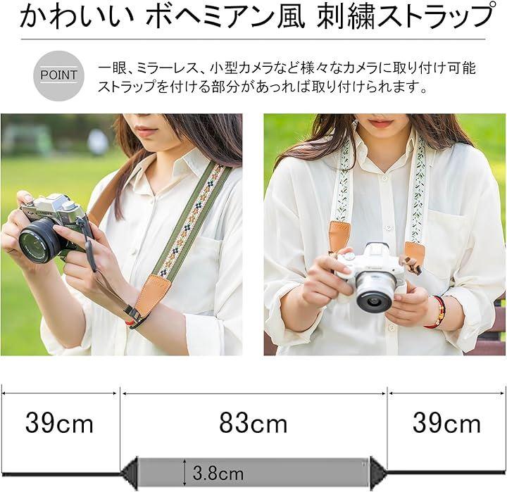 一目でかわいい、ボヘミアン刺繍の花柄カメラネックストラップ。 思い出を撮る大切な一眼レフ。