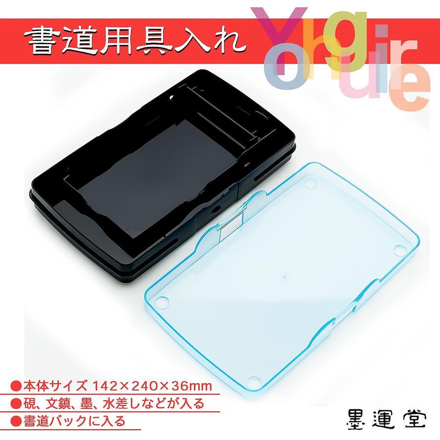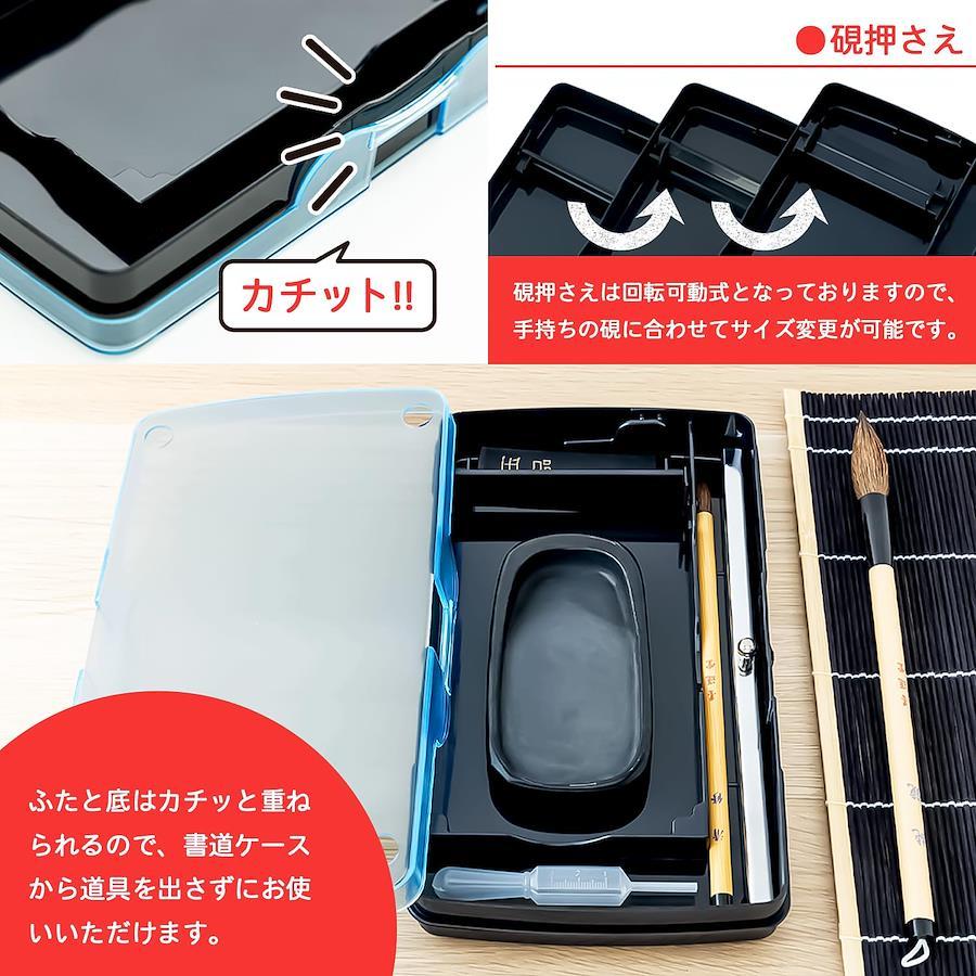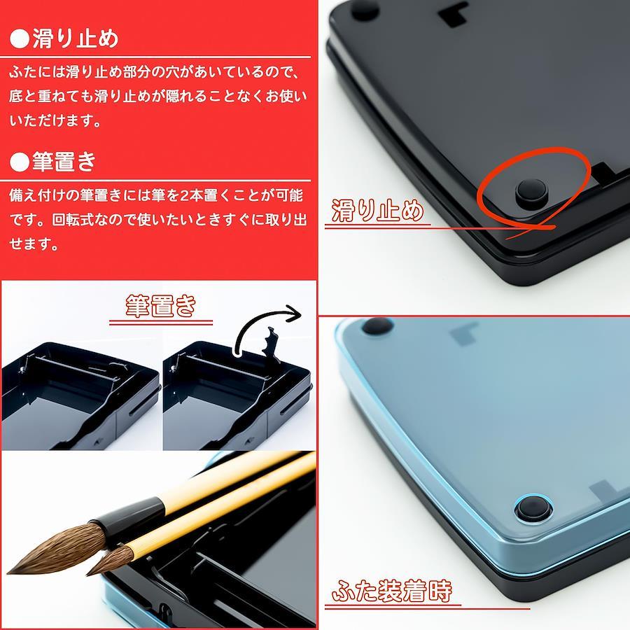硯、文鎮、墨、スポイトを入れる事ができ裏側には滑り止めがある。