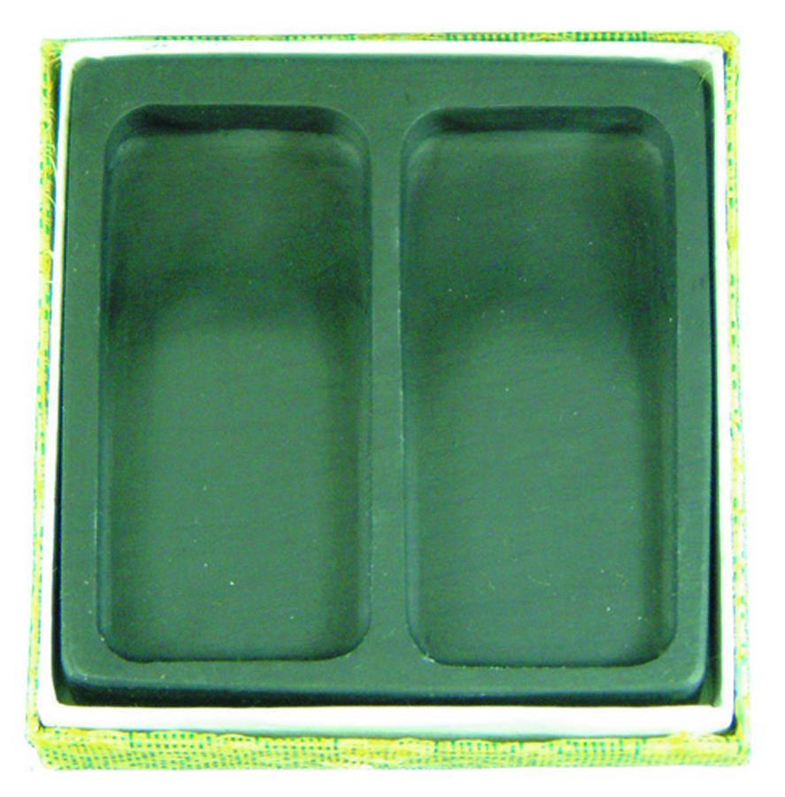 ・二種類の墨を磨る事ができ、それを一つの硯で同時に行える硯。