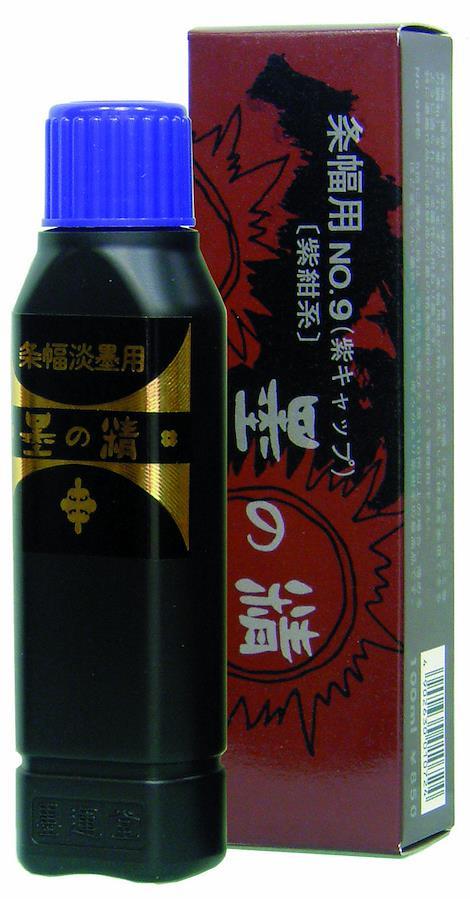 淡墨における美しい立体感(筆跡と滲みの調和)と透明感を表現。淡墨での漢字、調和体、小字数、仮名条幅の練習や作品作りに素紙や加工紙に合わせて製造している。冬場の屋外使用も問題なく、低温時のゲル化もない。使用濃度は2倍から60倍程度。淡墨を造る時には20℃前後の水で薄めてください。2倍から3倍に薄めた墨色 紫紺系の反射色の黒20倍以上に薄めた墨色 芯と滲みのバランスのよい立体感のある紫紺系。鉱物性芯焚油煙、合成糊剤使用。