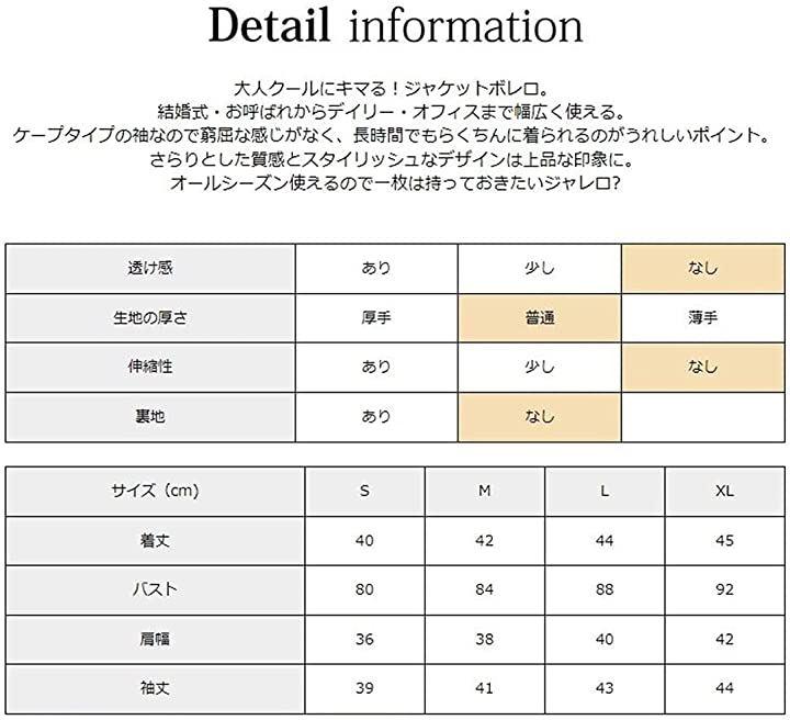 ・「サイズ/cm」S:着丈40/バスト80/肩幅36/袖丈39 M:着丈42/バスト84/肩幅38/袖丈41 L:着丈44/バスト88/肩幅40/袖丈43 XL:着丈45/バスト92/肩幅42/袖丈44 *サイズは平置きで測定しております。