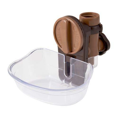 らくらく飲めて、らくらく洗えるケージ取り付け式給水器です。たっぷり飲める幅広皿で、透明で中が見えやすく、お皿だけ外してサッと洗うことができます。市販の500mlペットボトルが使用できます。漏れにくい止水コック付きで安心です。