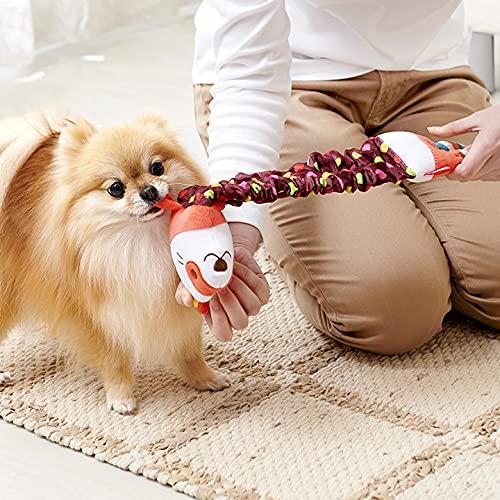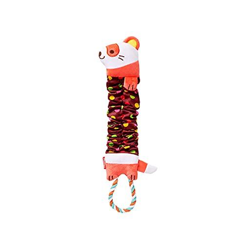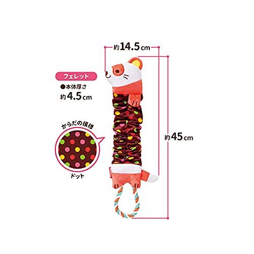 引っぱるとカラフルな体がのびる、ロングタイプのおもちゃ。体はゴム入りで、引っぱり合いや、長い体をくねくね動かして遊べます。顔部分はピーピー笛入り、足部分は引っぱり合いがしやすいロープ付きです。
