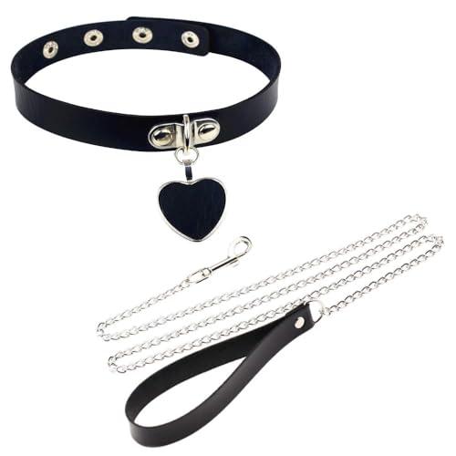 ボンテージ 首輪 ハート コスプレ セット リード付き チェーン SM グッズ プレイ 人間用 散歩 地雷系 びえん オシャレ (ブラックハート)