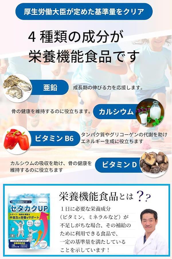 セタカクUPは、ビタミンB6、ビタミンD、亜鉛、カルシウムと4つの成分が栄養機能食品です。