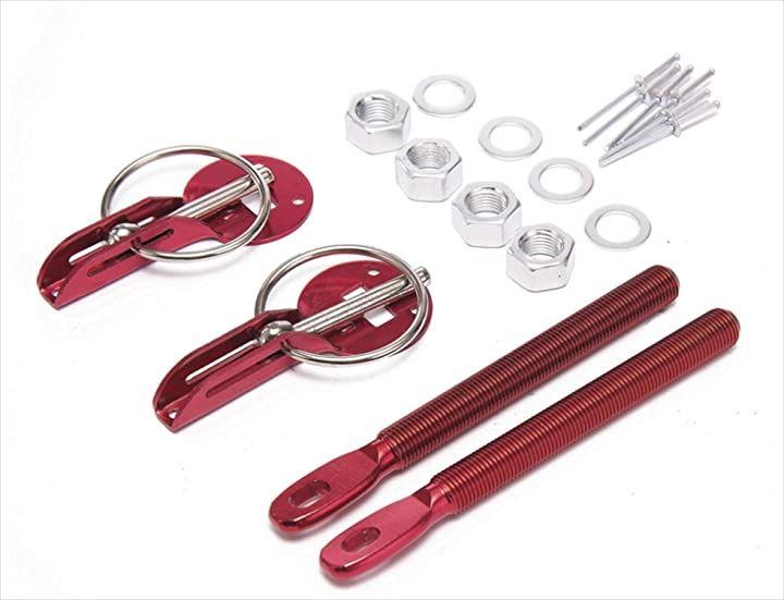 ・「内容」:ボンネットピン本体x2個 キャッチボルトx2本 キャッチボルト固定用ナット・ワッシャーx各4個 本体固定用ビス・板ナットx各6個 *ボンピン本体プレート以外のシルバーリング部分はスチール製になります(リングフック、ナット、ワッシャーはスチール製です) 「原産国」:中国
