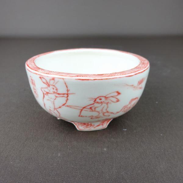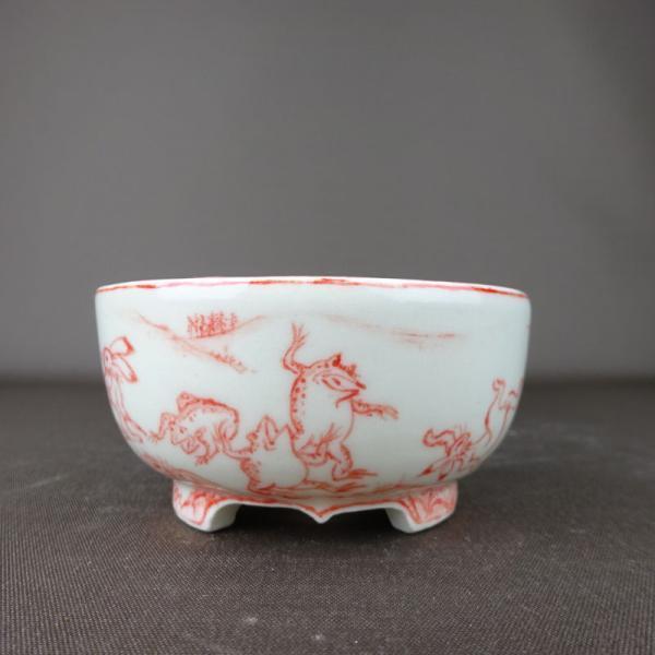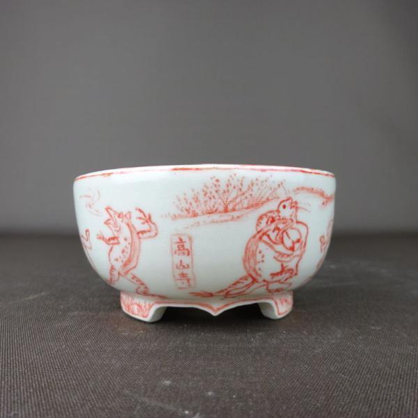 Bonsai pot, Koshufu, small, approximately 7.5cm long, round pot, red-painted, Choju Jinbutsu Giga (Choju Giga painting), Kosanji Temple, original, brand new