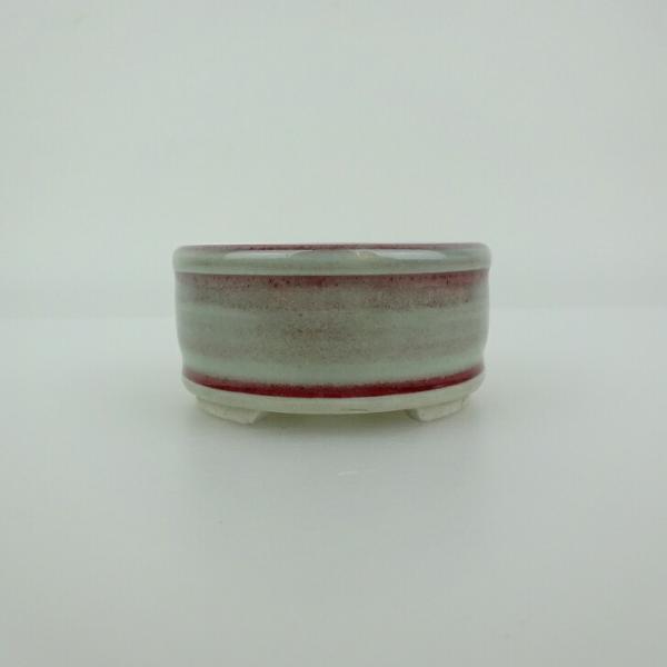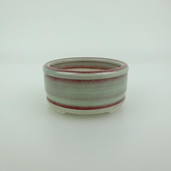 Bonsai pot, small, blue, approximately 6cm long, round, with upper and lower bands, glazed, new, limited quantity