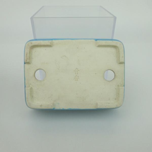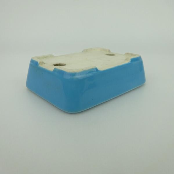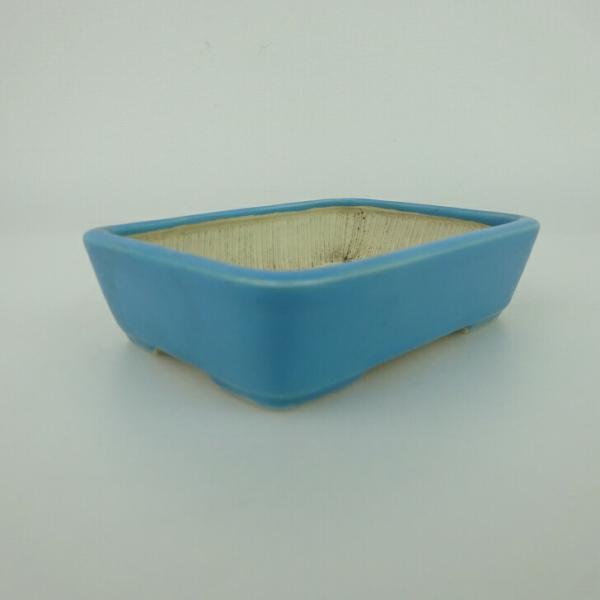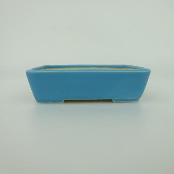 Bonsai pot, small, blue-green, approximately 9.3cm long, rectangular, glazed, actual item
