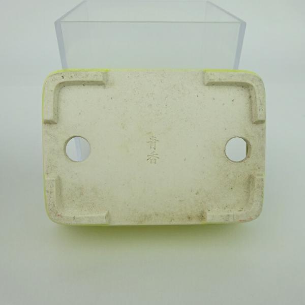 Bonsai pot, small, blue-green, approximately 9.5cm long, rectangular, glazed, actual item