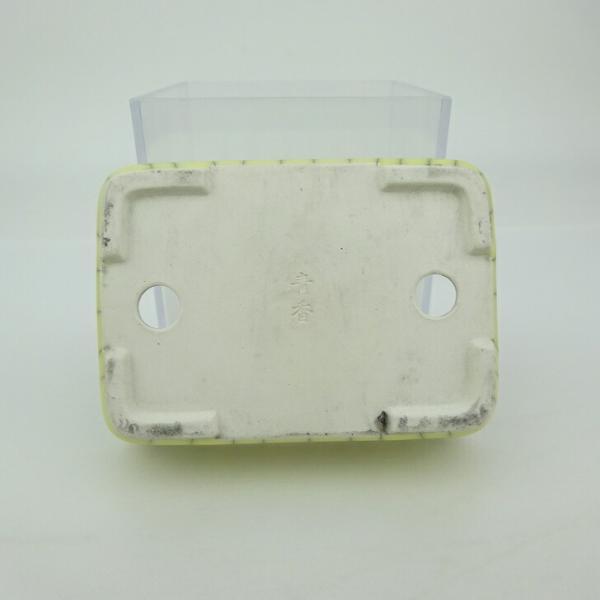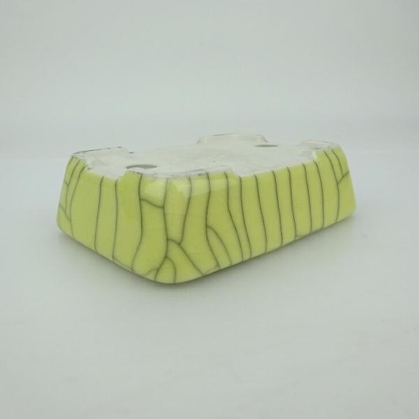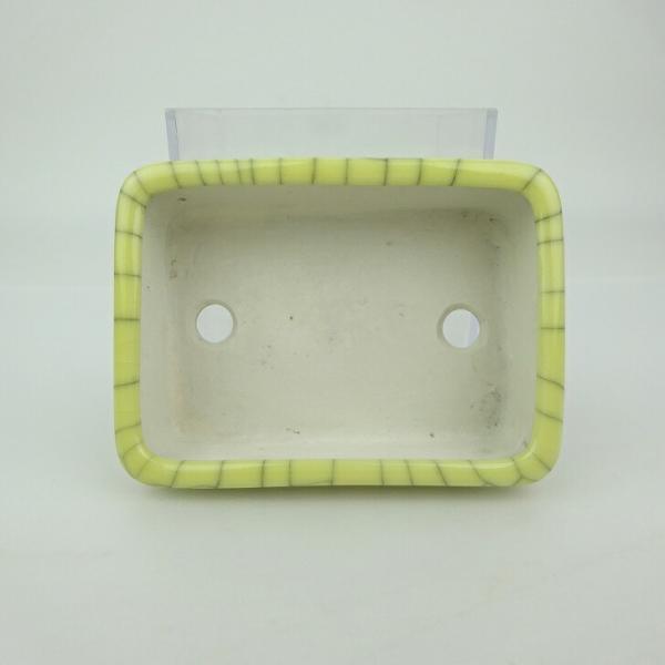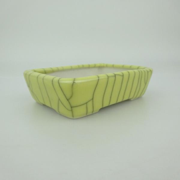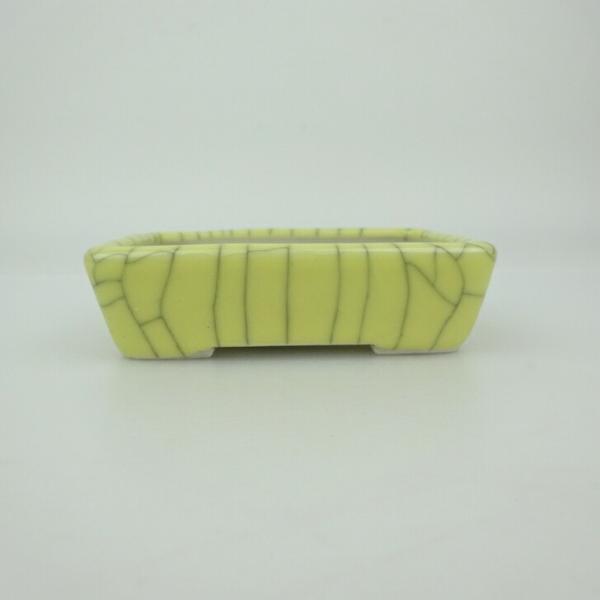 Bonsai pot, small, blue-scented, approximately 9.5cm long, rectangular, with cracked glaze. Actual item.
