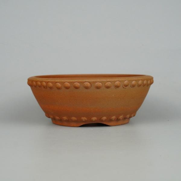 Bonsai pot, Tokoname, Juaki, Koyo Touen, small, approximately 14cm long, round pot, riveted, yakishime, clay finish, in original condition, new