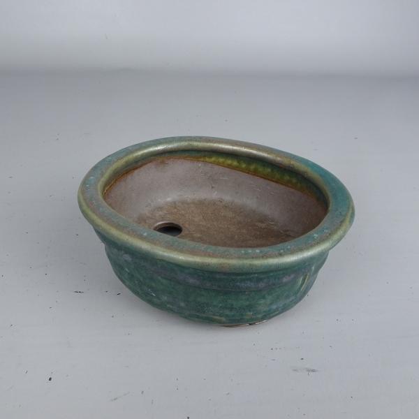 Bonsai pot, Yumi, small, approximately 13cm long, oval, with rim and window, glazed, in stock, new
