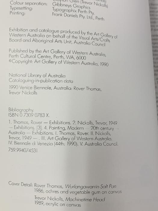 Books Venice Biennale Australia Rover Thomas Trevor Nickolls 1990