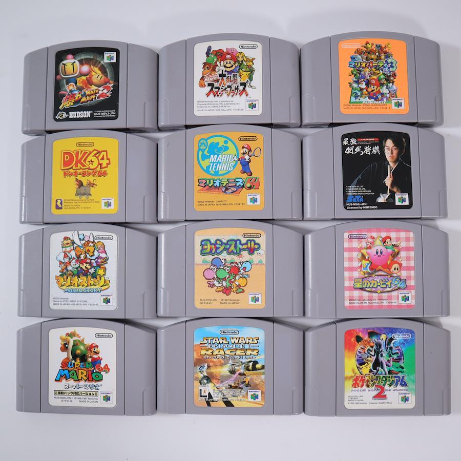 【詳細】■ 商品名・モデル:Nintendo64 ソフト12本セット■ ブランド:任天堂(Nintendo)■ タイトル一覧:1. 爆ボンバーマン22. 大乱闘スマッシュブラザーズ3. マリオパーティ34. ドンキーコング645. マリオテニス646. 最強羽生将棋7. マリオストーリー8. ヨッシーストーリー9. 星のカービィ6410. スーパーマリオ6411. STAR WARS エピソード1 レーサー12. ポケモンスタジアム2