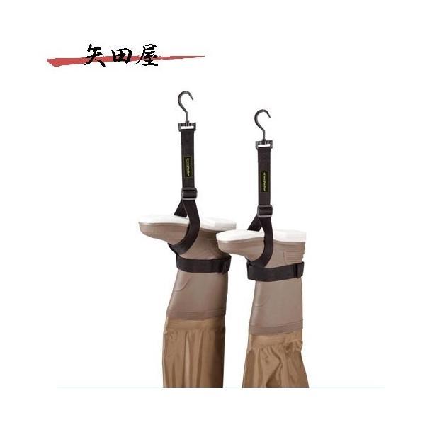 逆さに吊るすことで、内部までしっかり乾燥 足首、つま先の2点固定で落下を防ぐ ウェーダーの場合、素地の折れ曲がりを防ぐ事が出来ます。