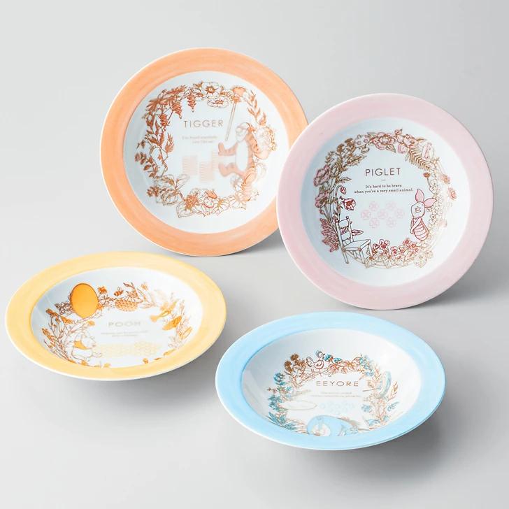 ボタニカルアートのなかに、プーさんと仲間たちをさりげなく描いたデザイン。ナチュラルな雰囲気にやさしいパステルの差し色がアクセントです。