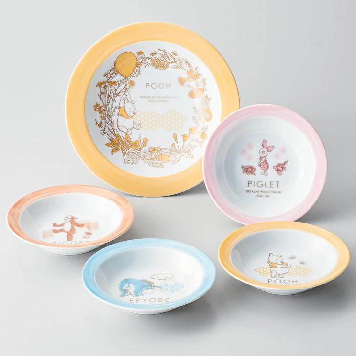 ボタニカルアートのなかに、プーさんと仲間たちをさりげなく描いたデザイン。ナチュラルな雰囲気にやさしいパステルの差し色がアクセントです。