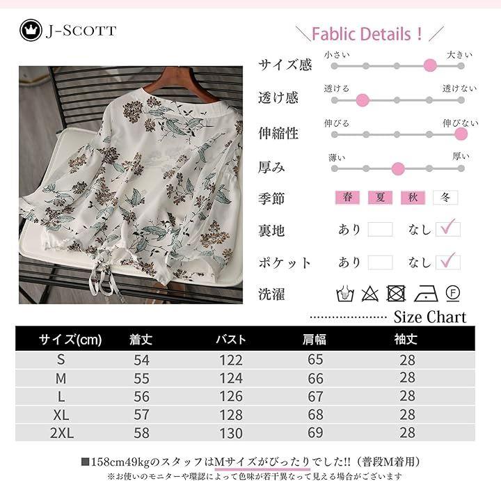 着丈/バスト/肩幅/袖丈 S:54/122/65/28 M:55/124/66/28 L:56/126/67/28 XL:57/128/68/28 2XL:58/130/69/28 *158cm/49kgのスタッフの場合:Mがジャストサイズでした(普段M着用)