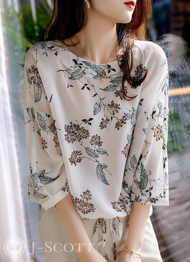 「しなやかな素材x可憐なプリントで柔らかさをプラス」 繊細な水彩画のようなフラワープリントが可憐な一枚。