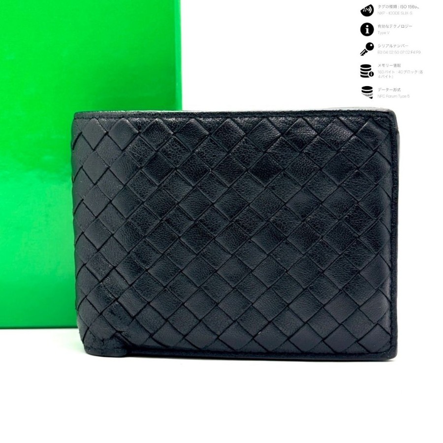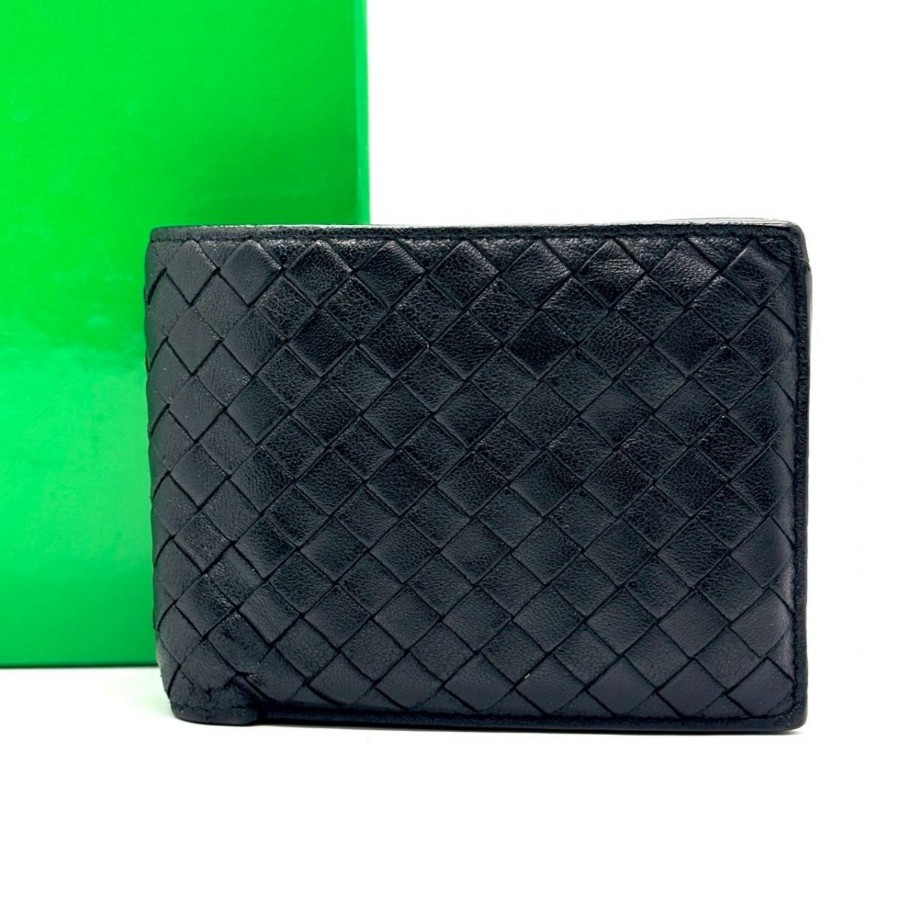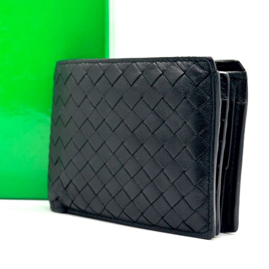 Bottega Veneta Bi-fold Wallet, Intrecciato, Compact Wallet, Genuine Leather, 9 Card Slots, Black