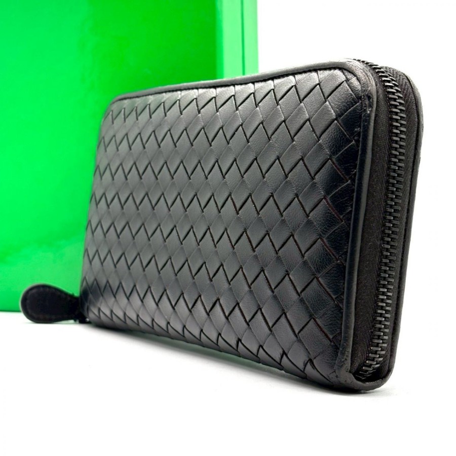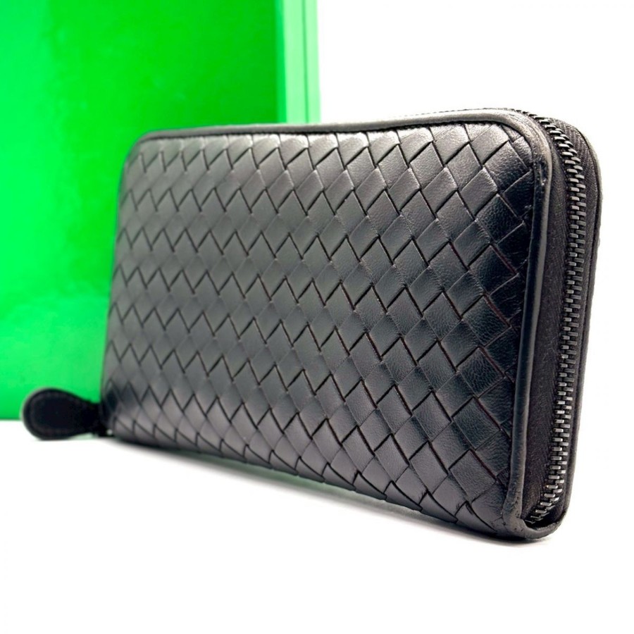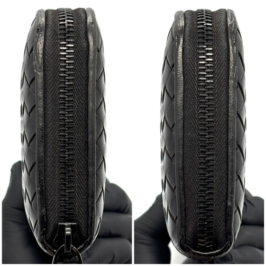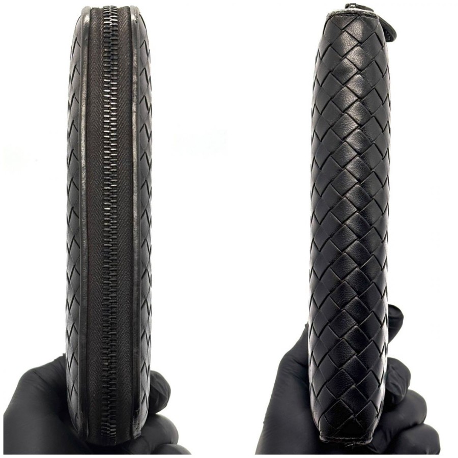BOTTEGA VENETA Intrecciato Round Zip Long Wallet, 8 Card Slots, Bi-color Recolored Item, Black