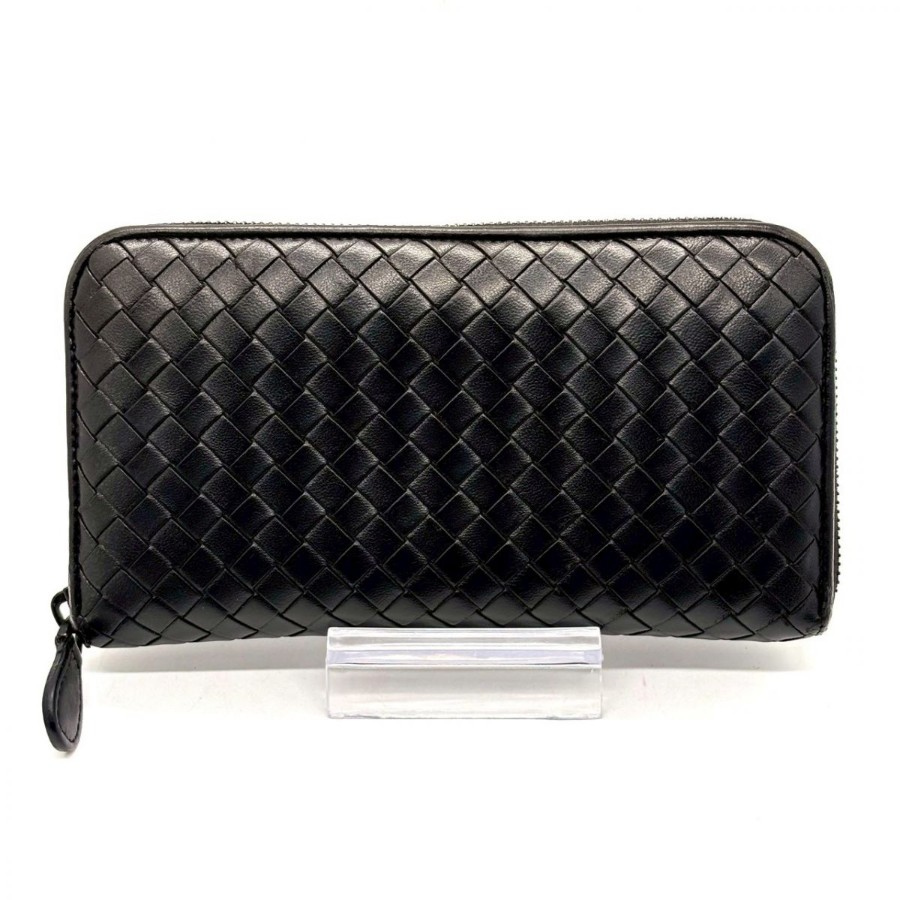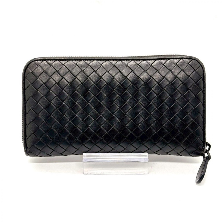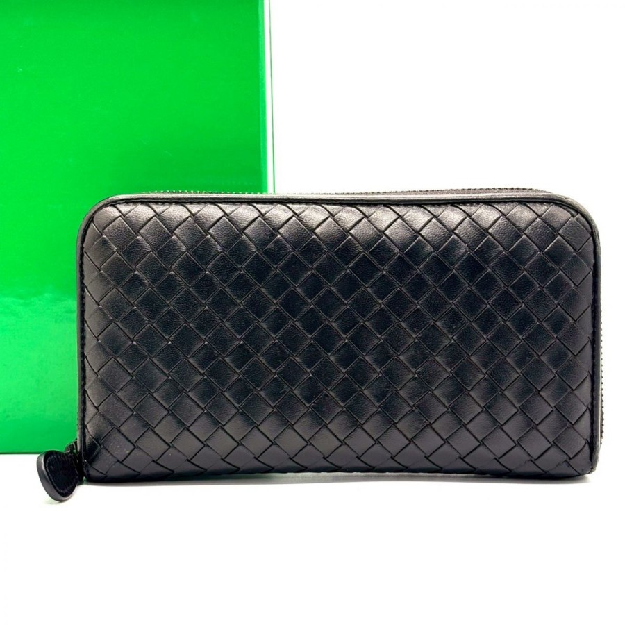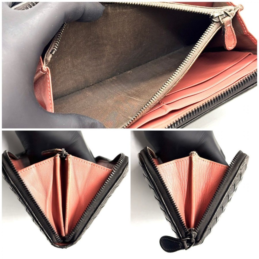 BOTTEGA VENETA Intrecciato Round Zip Long Wallet, 8 Card Slots, Bi-color Recolored Item, Black